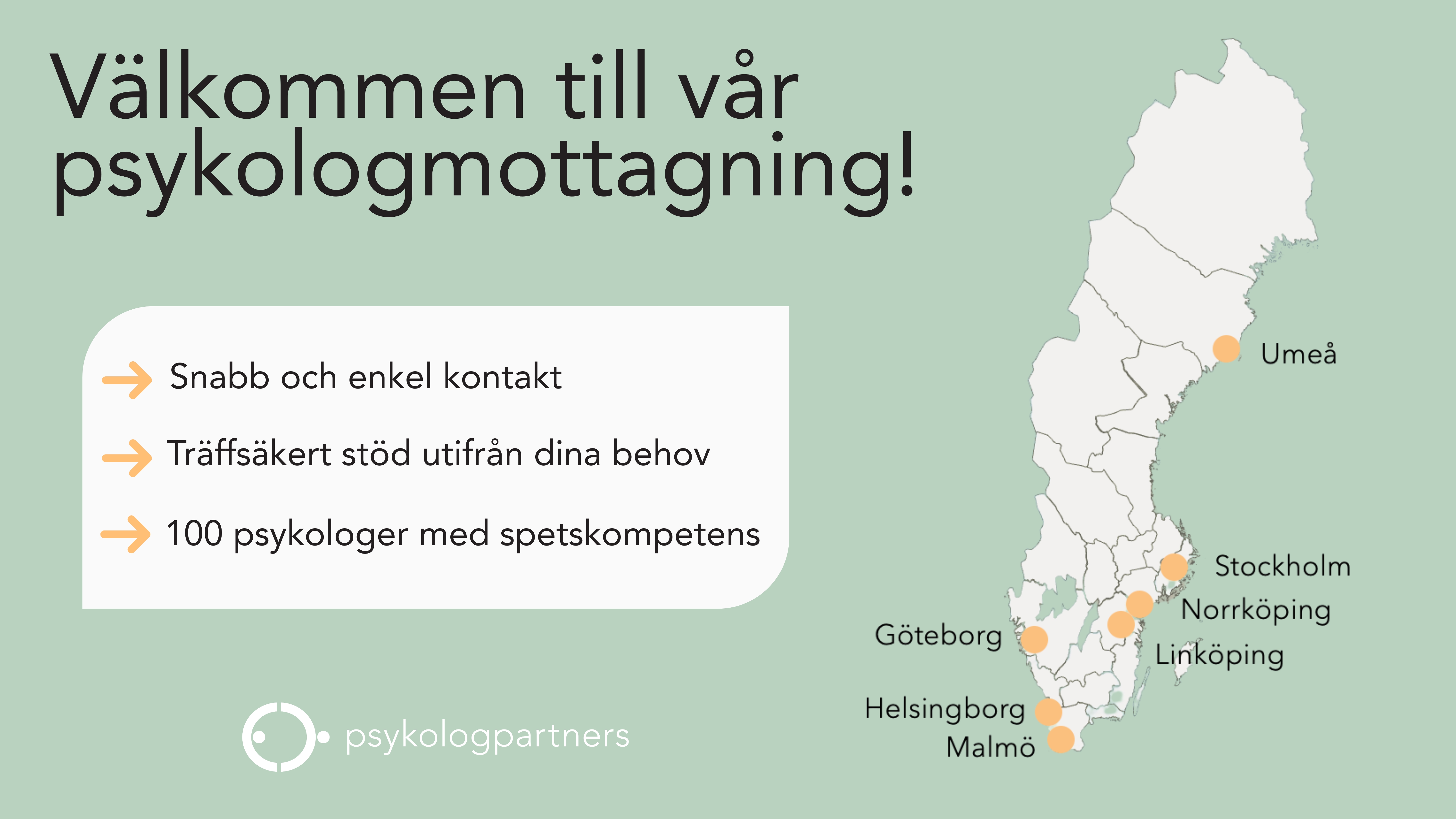 Stockholm, Göteborg, Malmö, Norrköping, Linköping, Helsingborg – eller välj psykolog online.